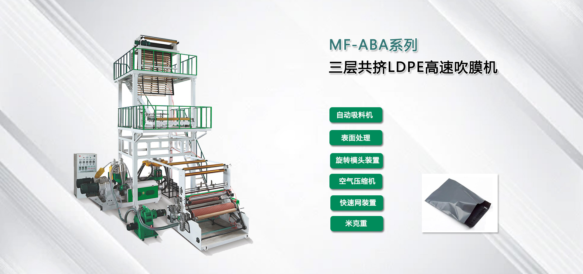 吹膜机适用于吹制高密度聚乙烯(HDPE)、低密度聚乙烯(LDPE)、和线性低密度聚乙烯(LLDPE)塑料薄膜。广泛应用于食品、服装、纺织品、日用品等民用品和工业品的包装